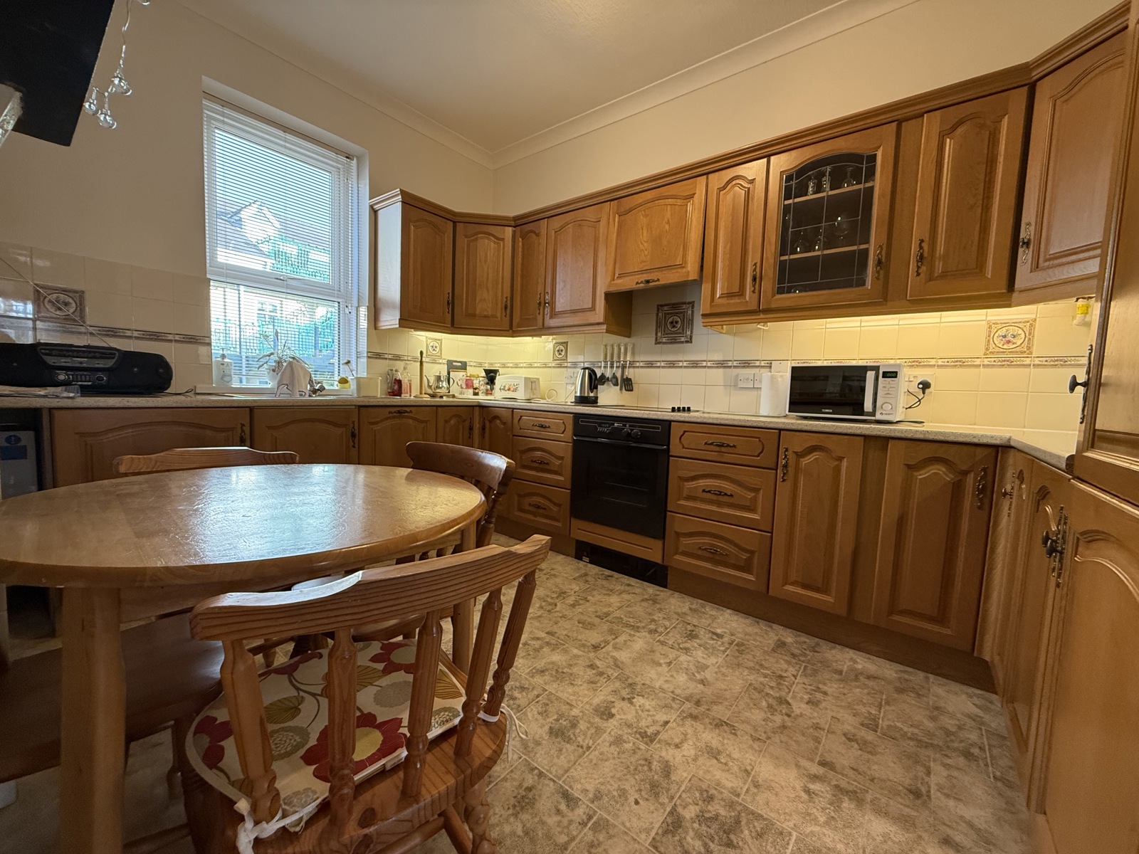 Double glazed UPVC over looking communal gardens, wall and base mount units throughout featuring integrated appliances such as fridge, dishwasher and oven, induction hob, tile effect vinyl flooring, vinyl worktops, radiator.