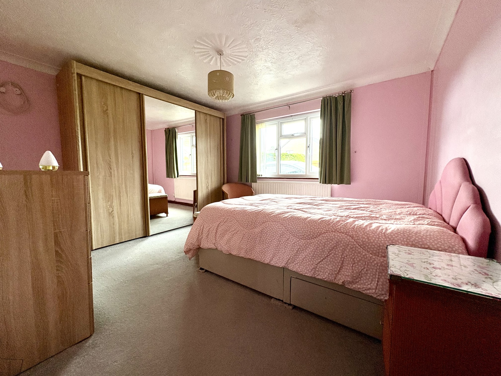 Bedroom with carpet flooring, a radiator and a doubleglazed uPVC window. Access is available from the entrance hall.