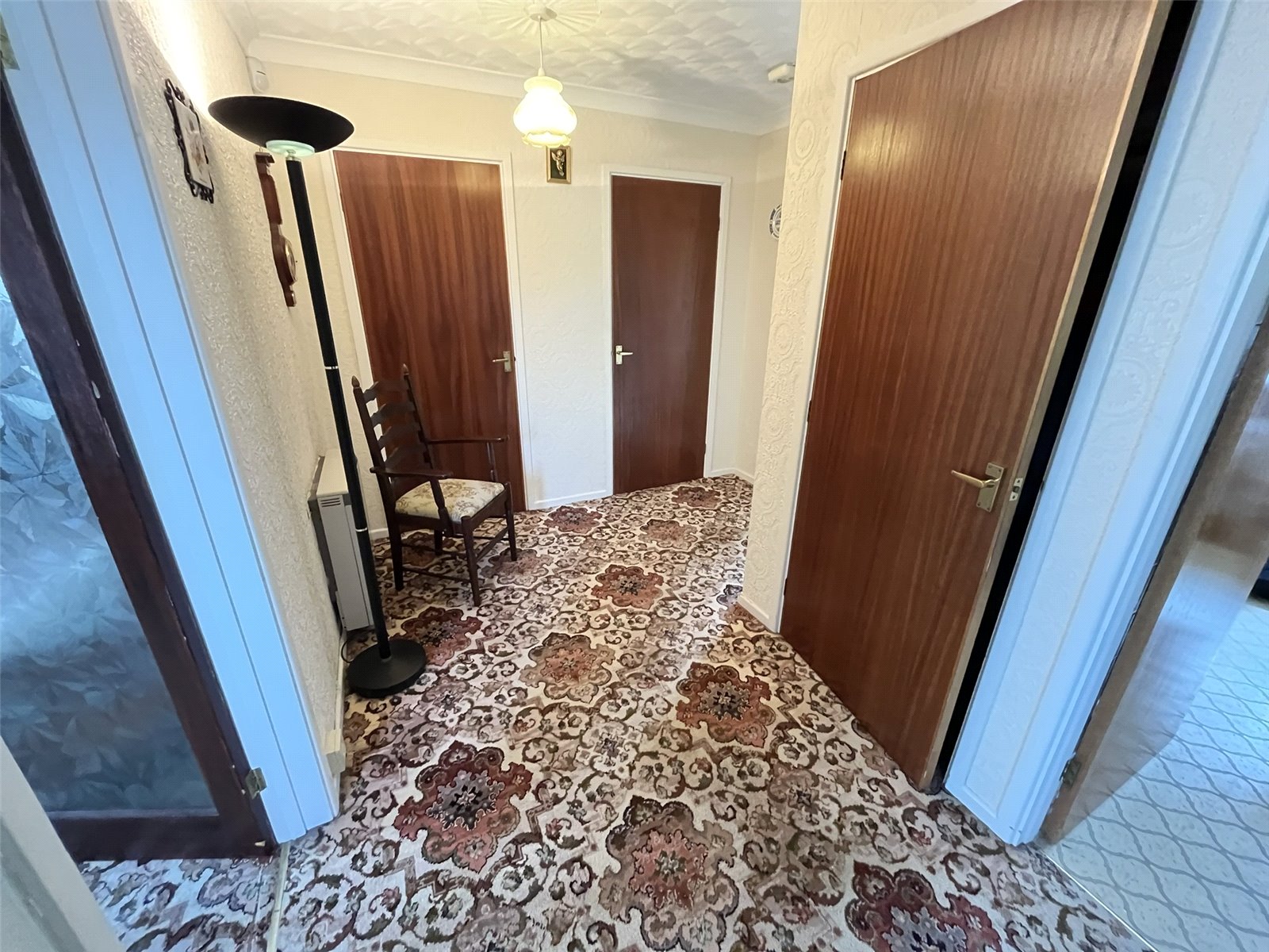 Sizeable hallway area, comprising of carpeted flooring, lighting, airing cupboard, 2 x storage cupboards, electric storage heater and access to;