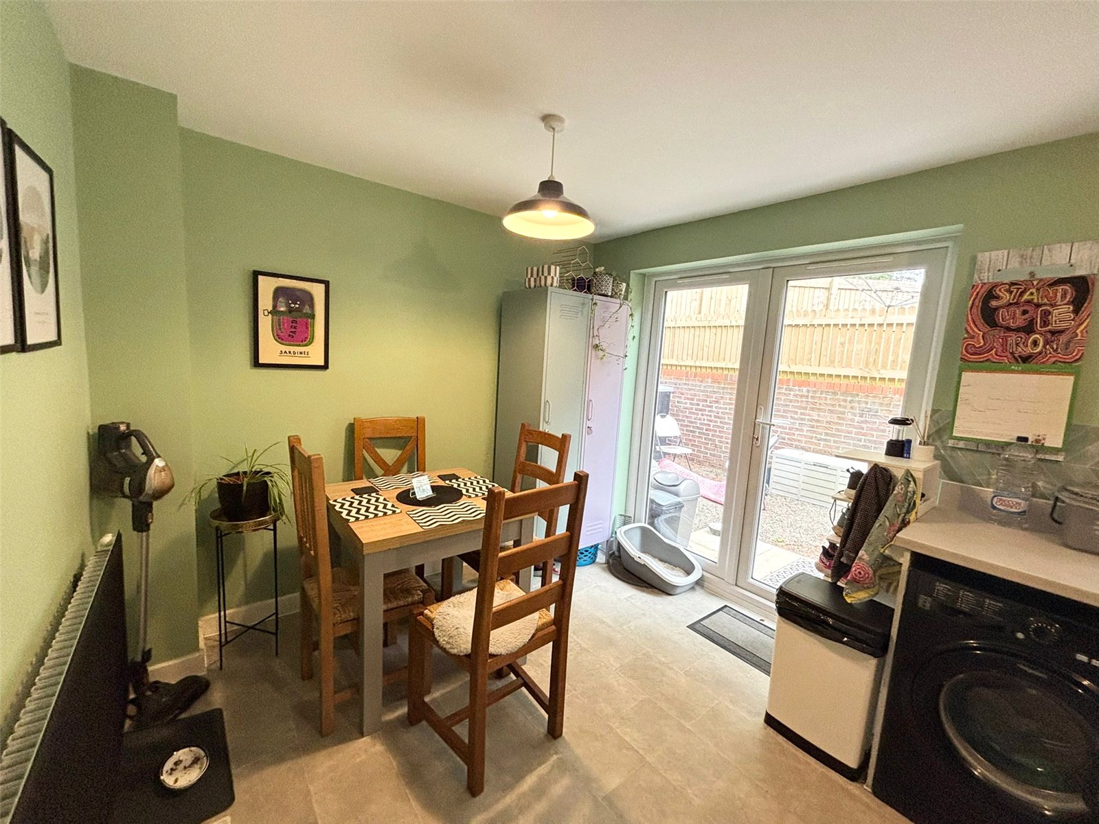 Stylishly presented with modern décor, the hallway features a fitted carpet, radiator, and ceiling light fitting. A useful understairs storage cupboard adds practical storage, while a double-glazed window to the front floods the space with natural light. The hallway flows seamlessly through to the kitchen/diner, creating a welcoming and open feel.