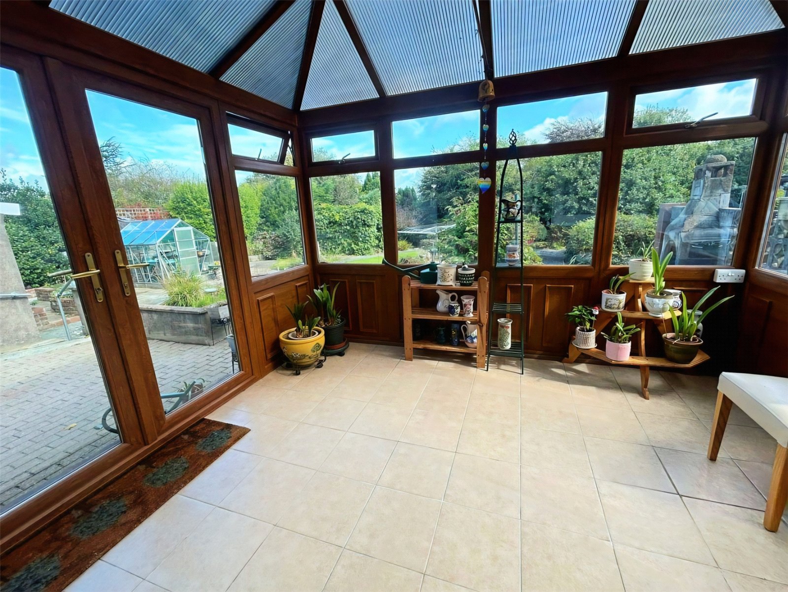 A bright and airy conservatory with a vaulted, glazed ceiling that floods the space with light. With panoramic views of the garden and easy access to the patio, this room is the perfect spot for relaxing, gardening, or enjoying a morning coffee. The tiled floor makes it a practical and low-maintenance extension of the home.