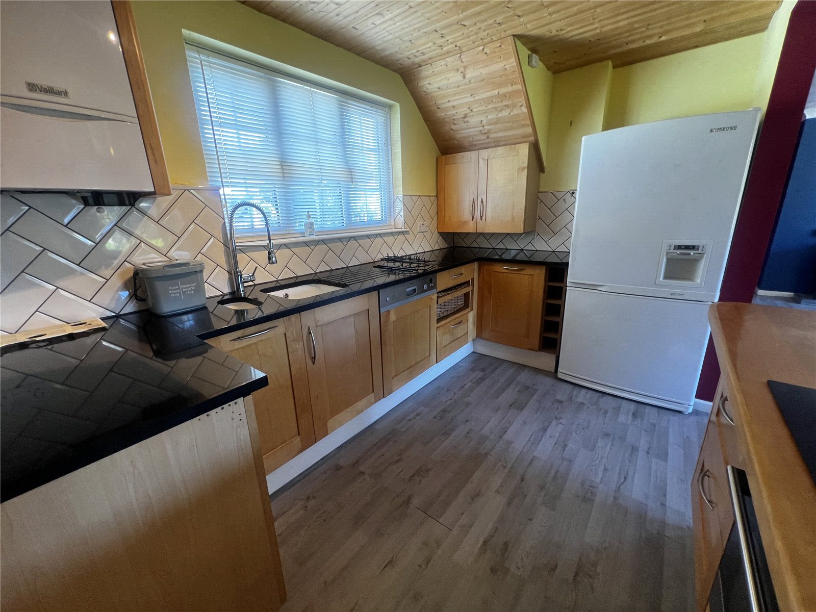 Wall & Base Mounted Units, Tiled Splash Backs, Sink, Built in appliances, Window, Side Door into outhouse, Breakfast Bar