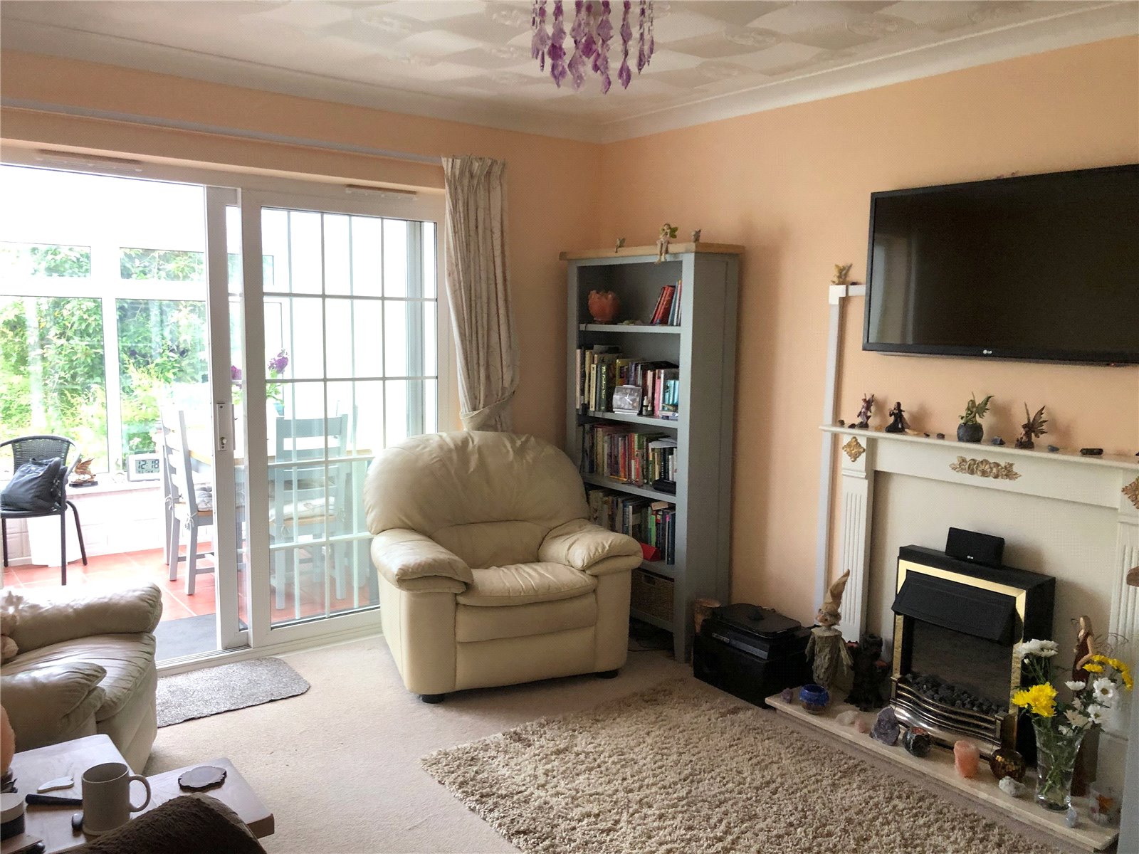 Sliding double glazed doors to conservatory, carpeted, ceiling light, ceiling coving, gas fire on tiled hearth with mantle and surround, radiator.