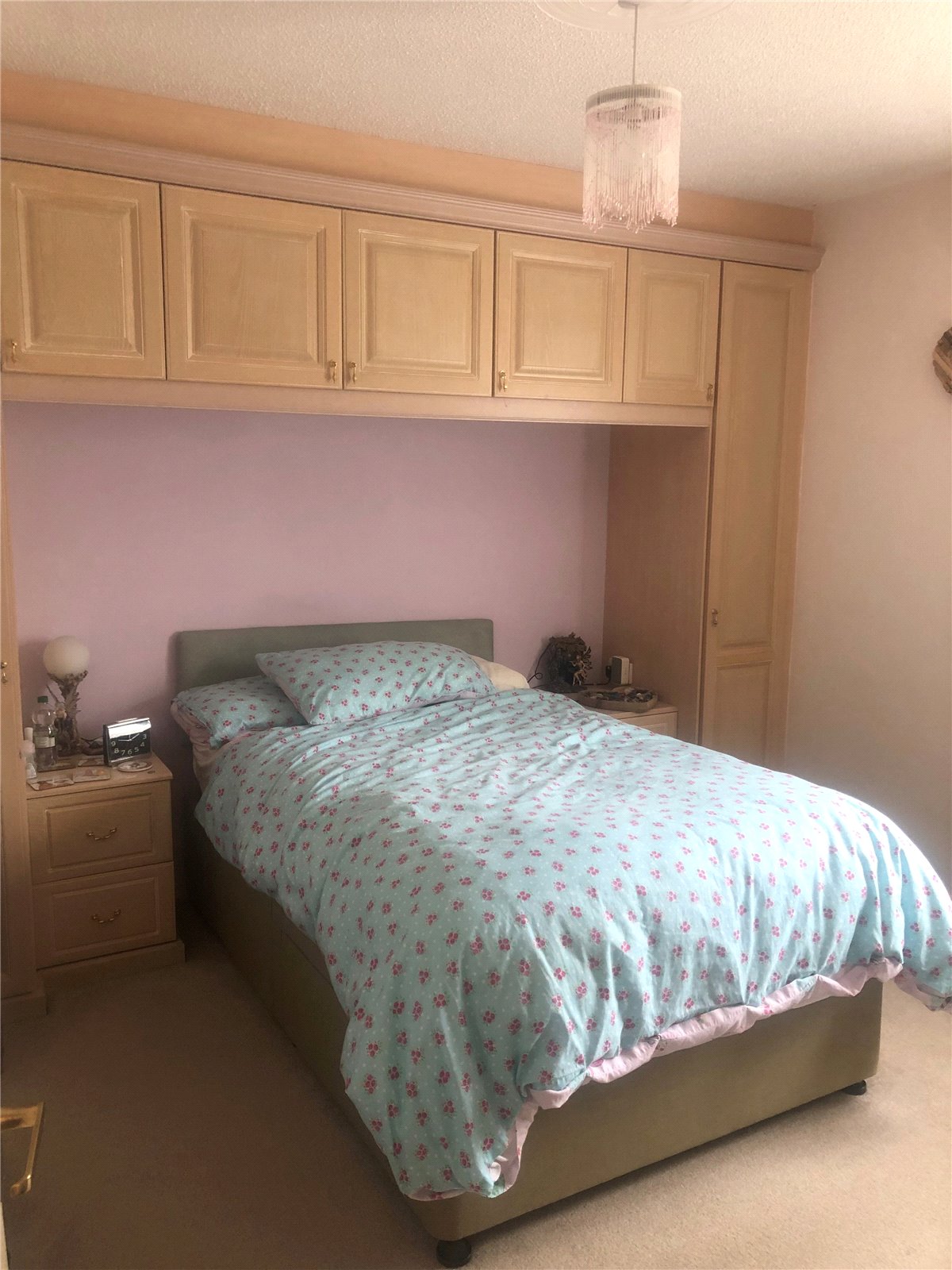 uPVC double glazed window to rear overlooking garden, purpose built storage cupboard with hanging rail and shelf, carpeted, ceiling light, radiator.