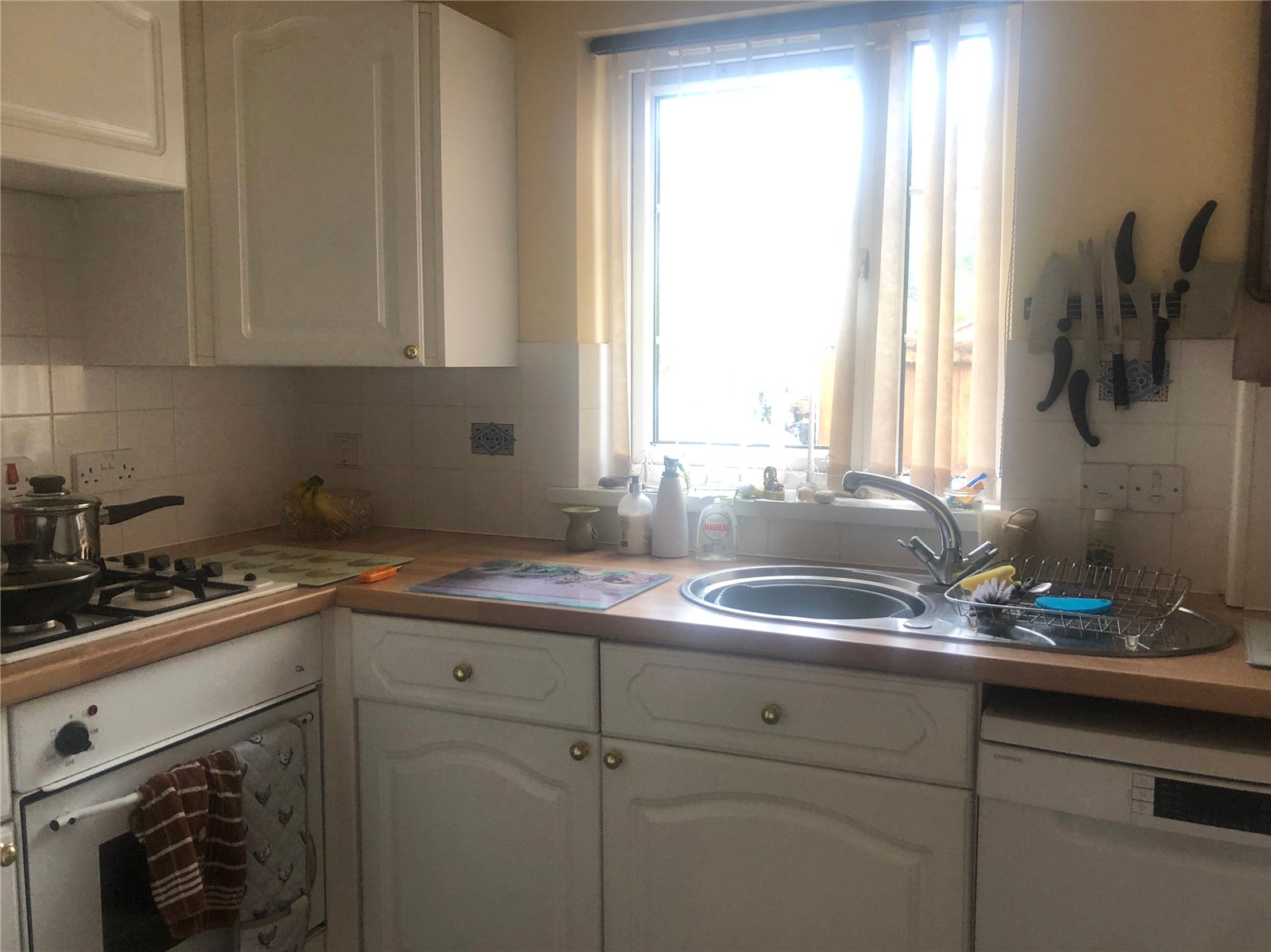 uPVC double glazed window to side, range of wall and base units with inset circular stainless steel sink and drainer with mixer tap, gas hob and oven, tiled splashbacks, radiator, space and plumbing for dishwasher, space for fridge/freezer, Ideal gas boiler (installed 2017).