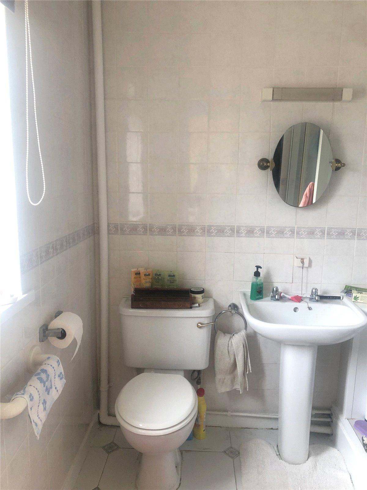 uPVC obscure double glazed window to front, fully tiled walls, wc. wash hand basin, glazed shower cubicle with Triton shower fitted (2021), wall mounted mirror, ceiling light.