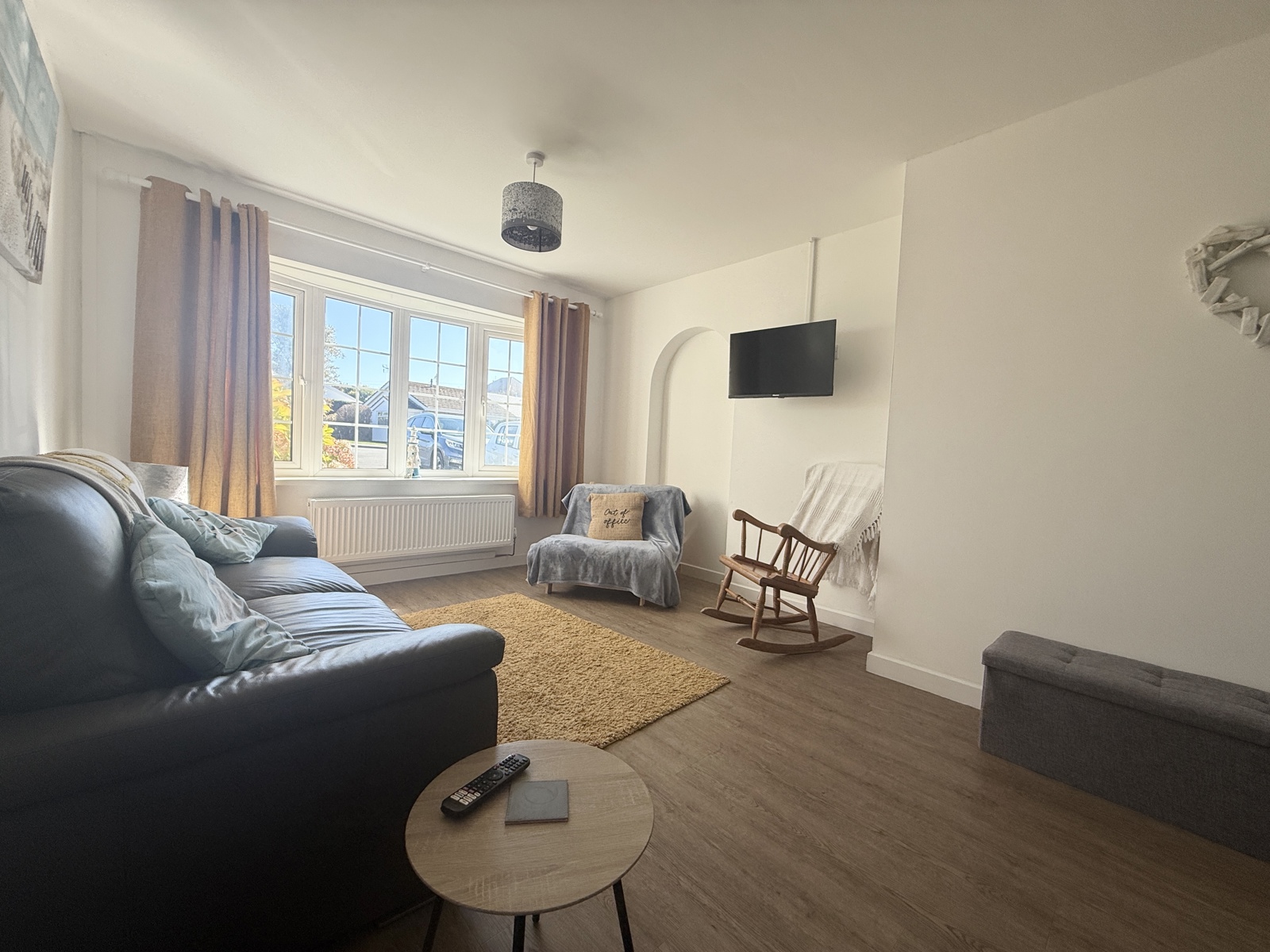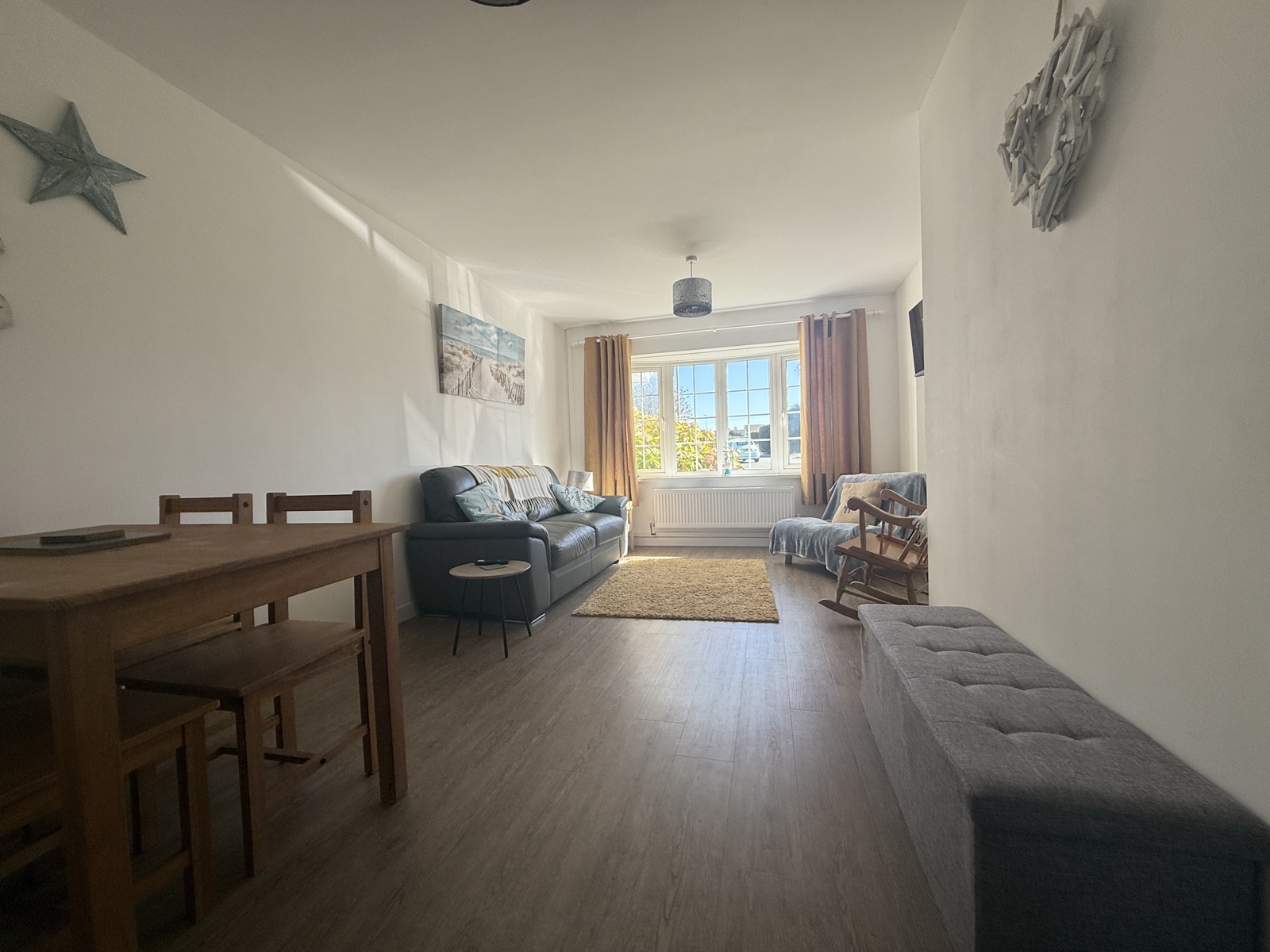 Large UPVC double glazed window adding light to the living area, two radiators, LVT flooring.