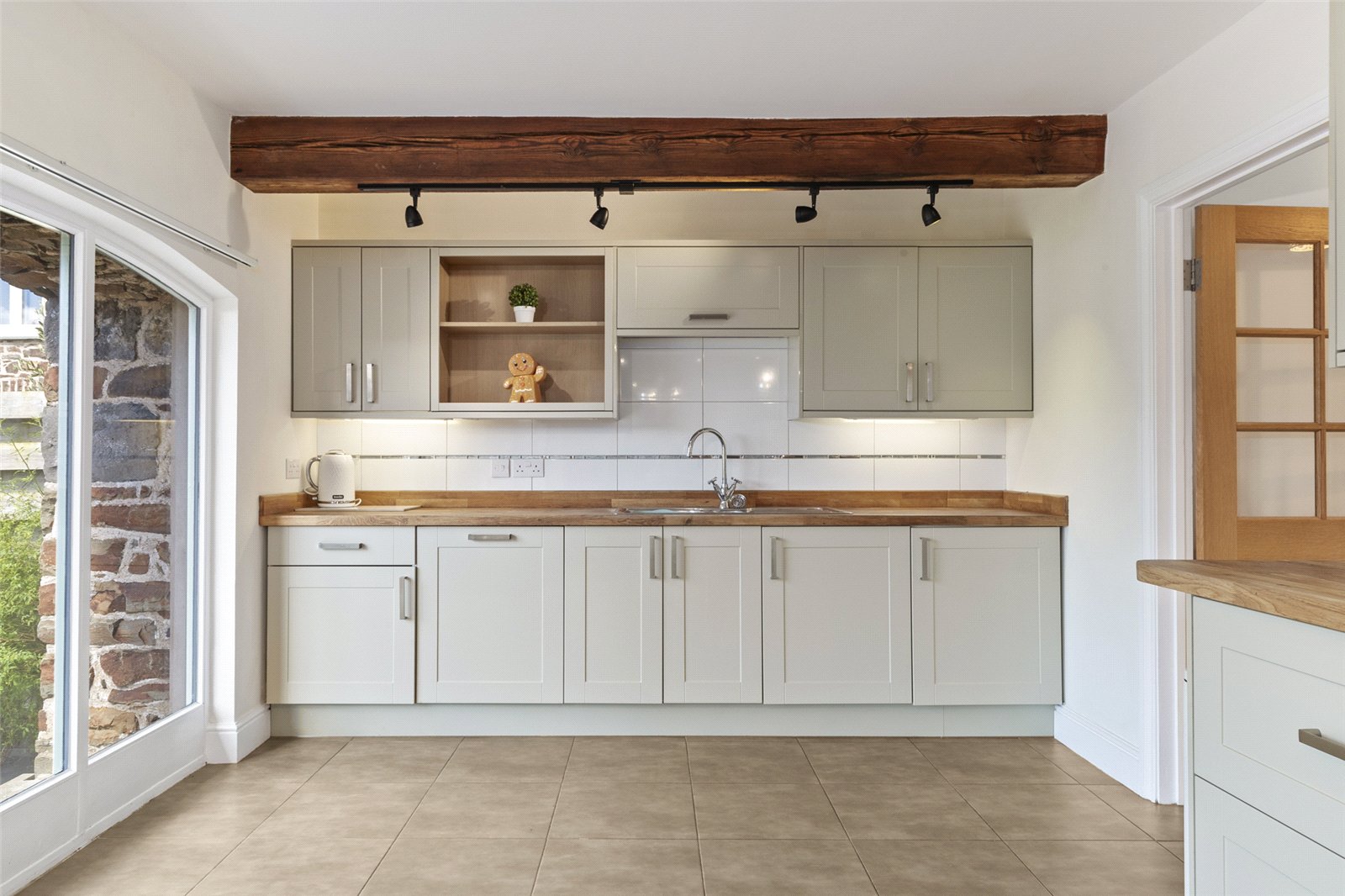 Bathed in natural light, the kitchen's bright and airy feel is enhanced by direct access to the garden via elegant French doors, seamlessly blending indoor and outdoor living. This is more than just a kitchen; it's a social hub and a truly captivating space to enjoy the home's superb setting.