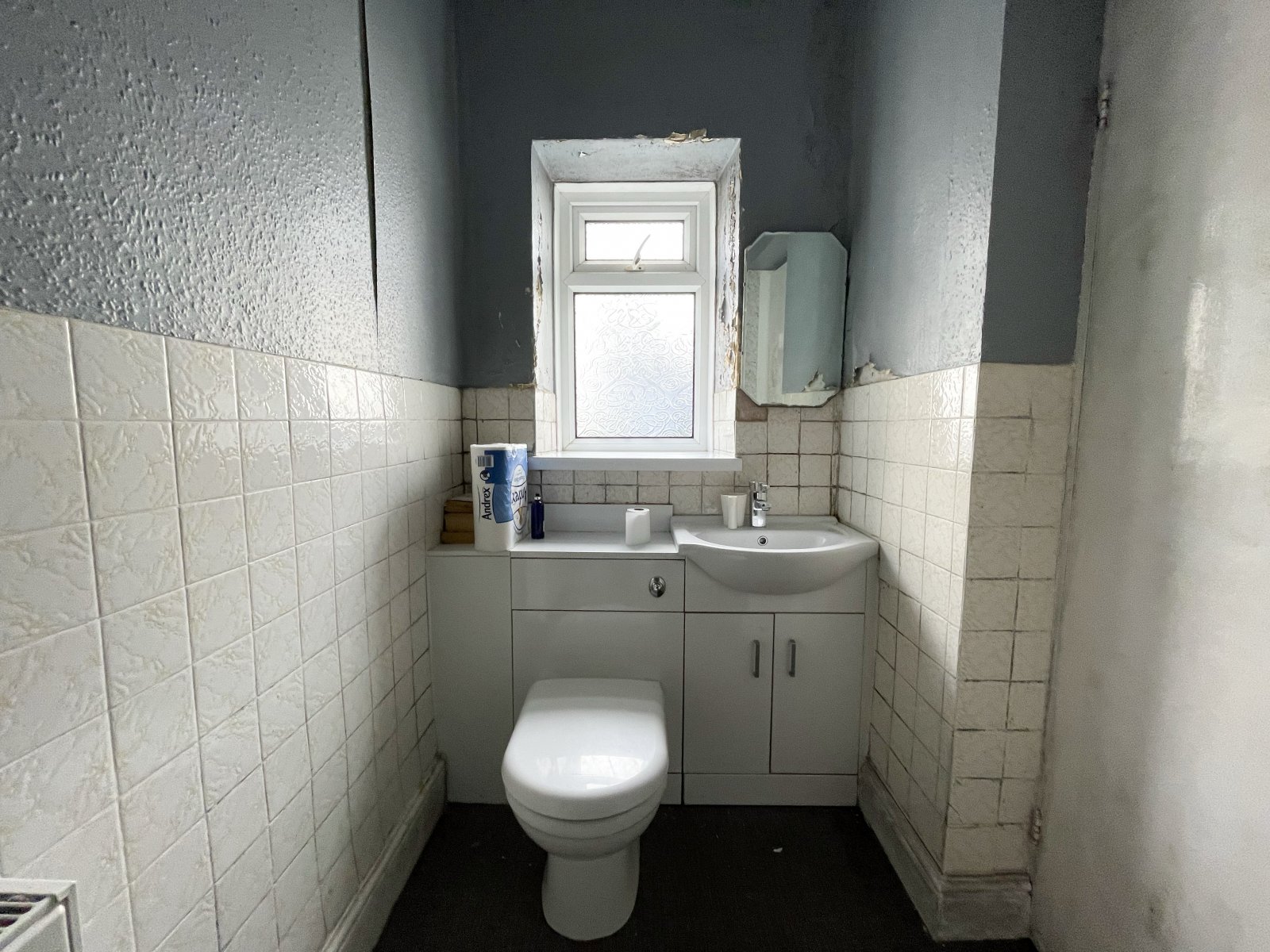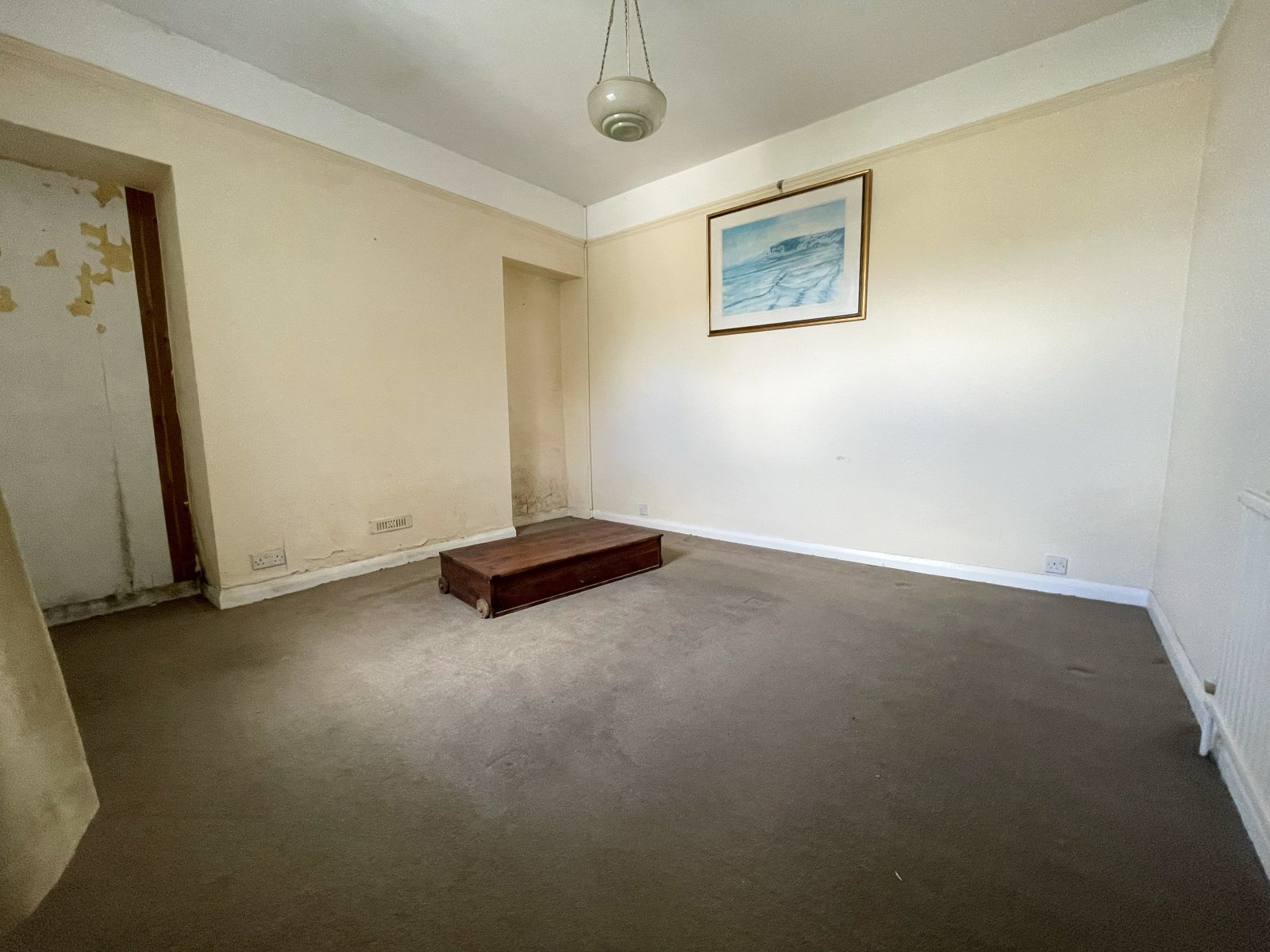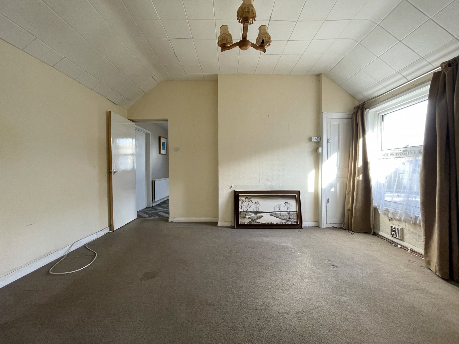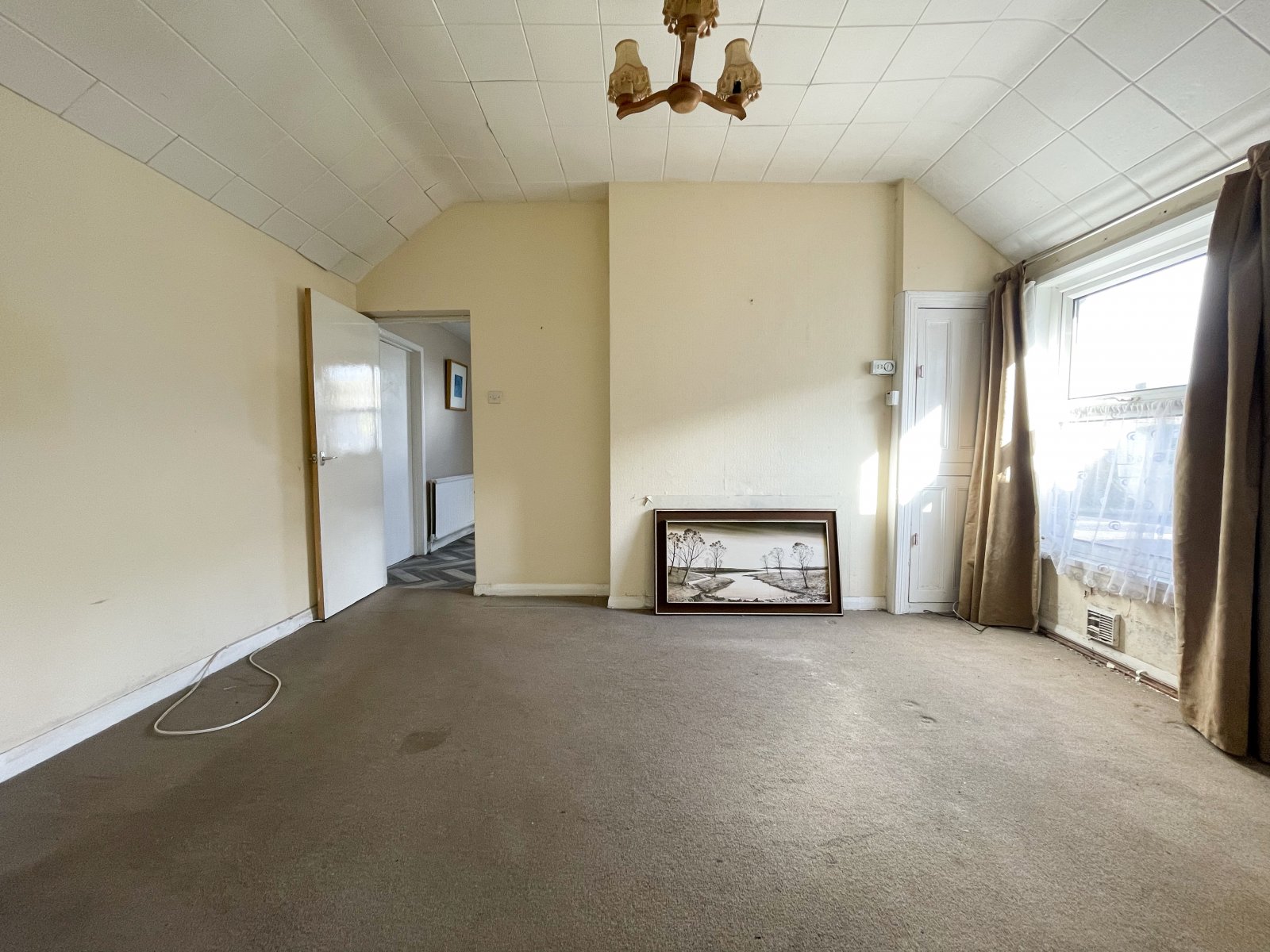 From the property's entrance hallways, access is given to this large double bedroom with carpeted flooring, ceiling light, radiator, double-glazed bay window to fore and wash hand basin.
