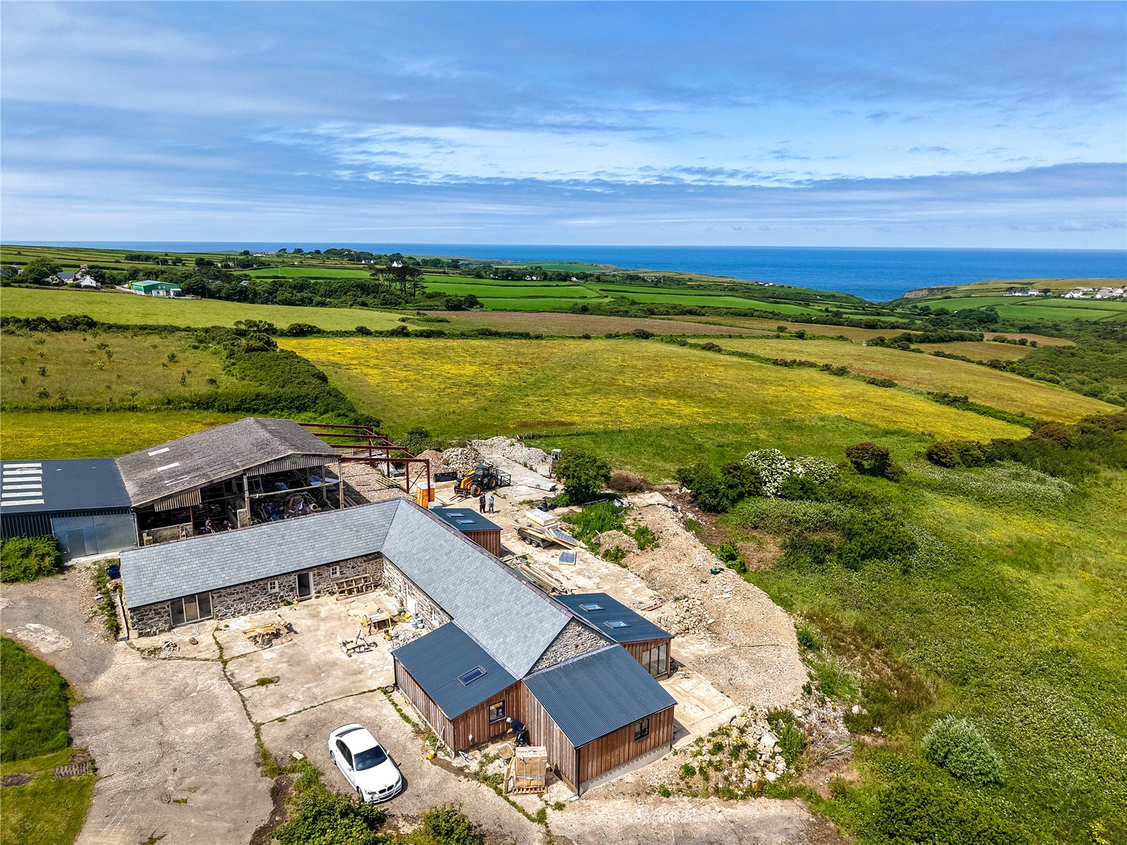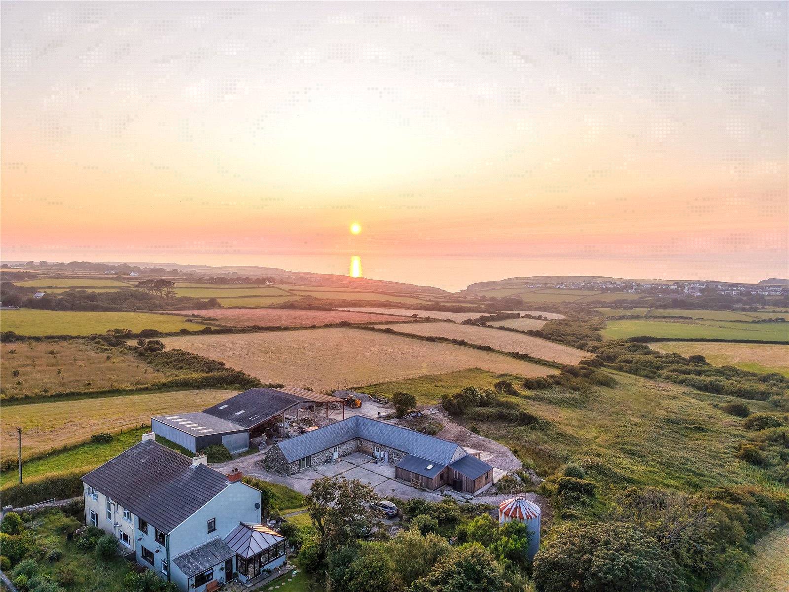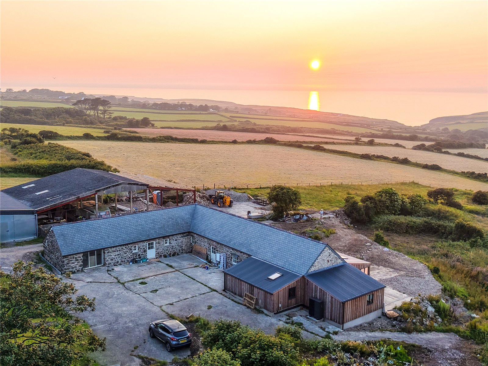 As the sun begins to set, gather with loved ones in the sunroom or open-plan kitchen dinner, or out on the generous patio, wine glasses in hand, as the sky turns golden over the ocean – the 180-degree sea views here are truly second to none. Adjacent is a 950 square foot outbuilding with rooms to store boats, caravans, and cars.