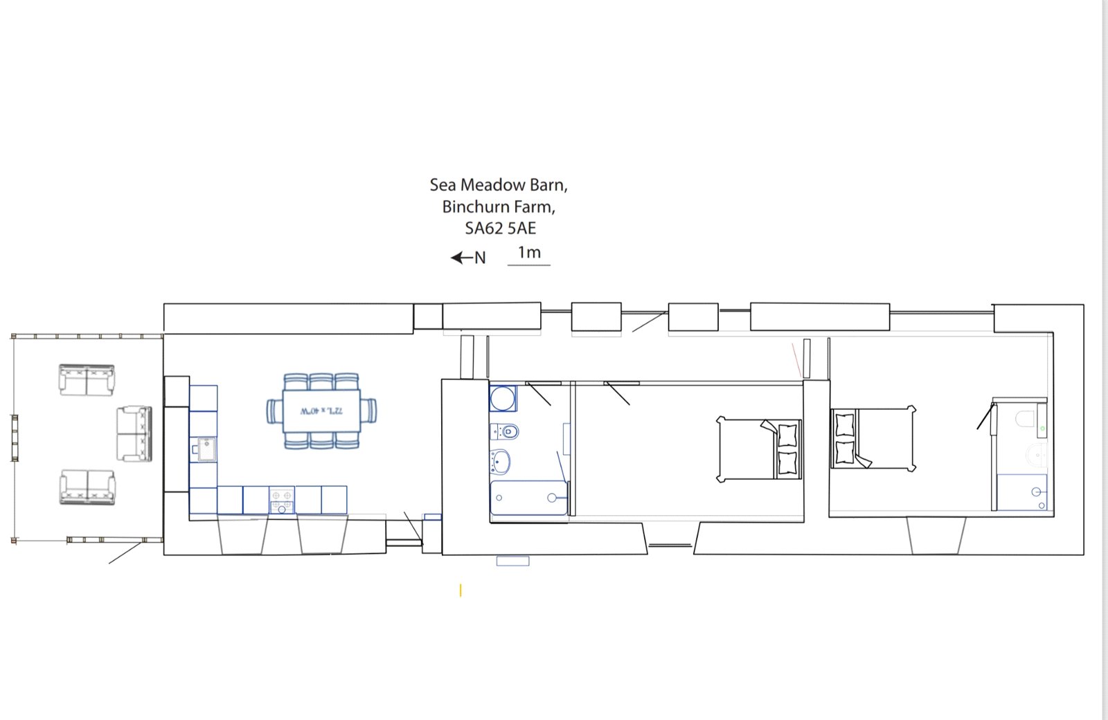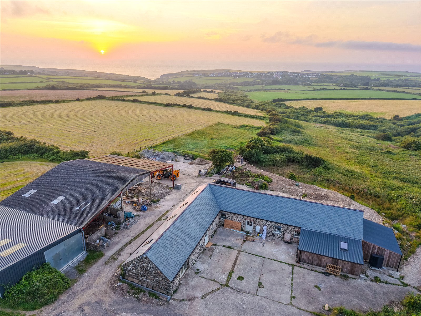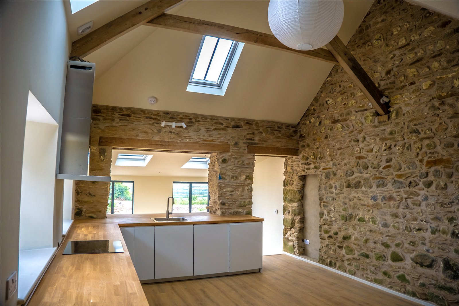 Sea Meadow Barn – Trefin, Haverfordwest A Charming 2-Bedroom Barn Conversion with Breathtaking Sea Views, Land and Outbuildings Looking over Aberfelin cove and the tranquil coastal village of Trefin, just a short drive from St Davids, Fishguard and Haverfordwest, Sea Meadow Barn is a beautifully renovated 2-bedroom barn conversion with a meadow/paddock and outbuildings, all with sensational , panoramic views of the sea, Surrounded by rolling fields and wildflower meadows, this is a place where peace, privacy, and natural beauty meet in perfect harmony. Thoughtfully converted to a high standard, the barn combines the charm of its original stone structure with modern, comfortable living. Inside, you will find a spacious open-plan layout with vaulted ceilings where natural light pours in through large windows, framing the spectacular sea views. The well-appointed kitchen and cosy living-dining area offer the ideal setting for relaxed family meals or entertaining friends, all while watching the sun set over the horizon. With two generously sized bedrooms, each beautifully finished with oak beams, vaulted ceilings and exposed stone walls, the home makes an ideal retreat – whether as a full-time residence, a coastal escape, or a character-filled holiday let. One of Sea Meadow Barn’s standout features is its substantial 1800 square foot outbuilding and large yard – a rare and exciting opportunity with superb aspect overlooking its 0.5-acre private meadow above a valley down to Aberfelin cove. These would be perfect for glamping/camping, a creative studio, workshop, storage haven, or even a conversion project (subject to planning), the space offers limitless potential to tailor it to your needs. Trefin itself is a 20-minute walk away, a charming and peaceful village on the Pembrokeshire Coast Path, renowned for its rugged coastline, hidden coves, and welcoming community. Just minutes from the beach and surrounded by some of the UK’s most dramatic coastal scenery, it is a paradise for walkers, artists, sea swimmers, and anyone looking to reconnect with nature. Nearby Haverfordwest offers excellent amenities including shops, cafes, schools, and transport links. Sea Meadow Barn is the kind of property that captures the imagination – with views you will never tire of and a setting that soothes the soul. A rare opportunity to enjoy the best of coastal country living, with space to grow and dream. NOTE: The property is currently subject to a holiday use / non-permanent residency restriction, meaning it cannot be occupied as a primary residence. The owners have left this as it has the benefit of exempting the property from the 150% council tax premium, for those using it as a second home. However, a pre-application enquiry has been submitted and initial feedback from the local planning authority suggests that this condition could be removed, subject to the payment of an Affordable Housing Contribution (AHC). Based on current policy in Wales for this postcode, the required contribution is calculated at £175 (approx) per square metre of internal floor space. This offers a realistic and straightforward route to full residential use, subject to the necessary planning approvals and confirmation from the relevant authority.