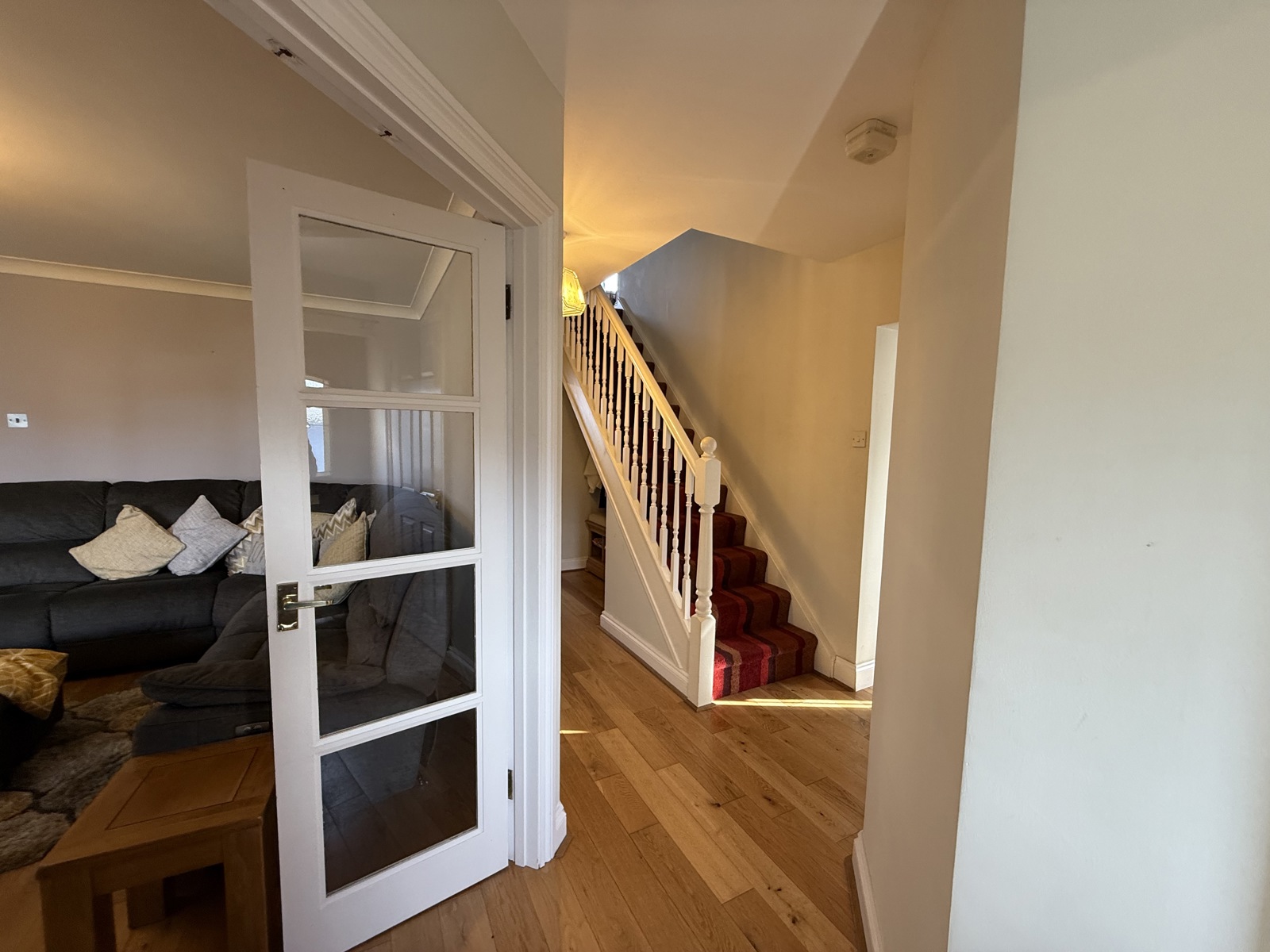 uPVC double glazed window overlooking the front of the property, oak flooring.