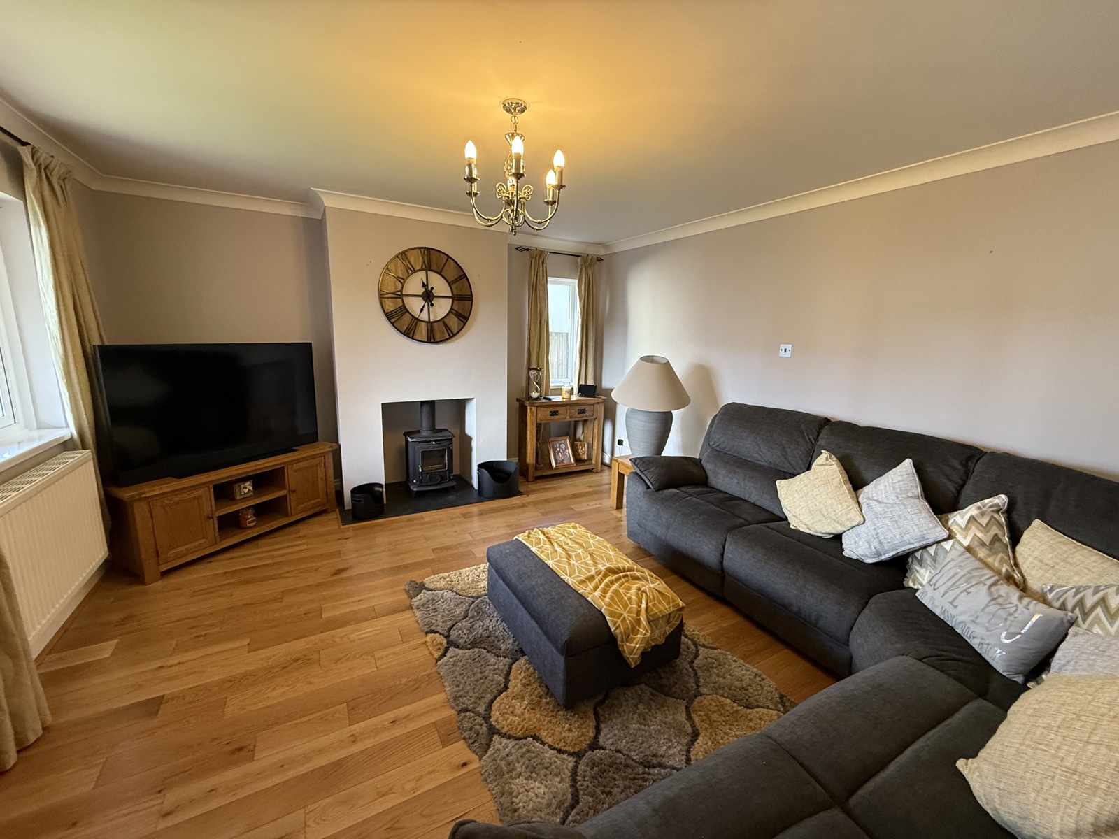 uPVC double glazed window to the front and side, multi fuel log burner and oak flooring.