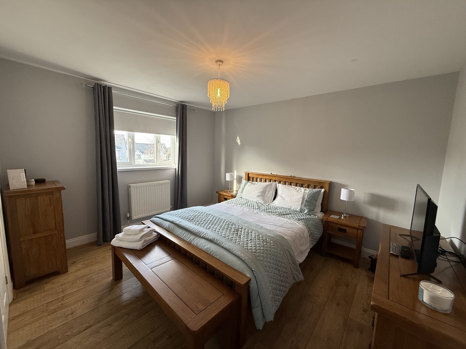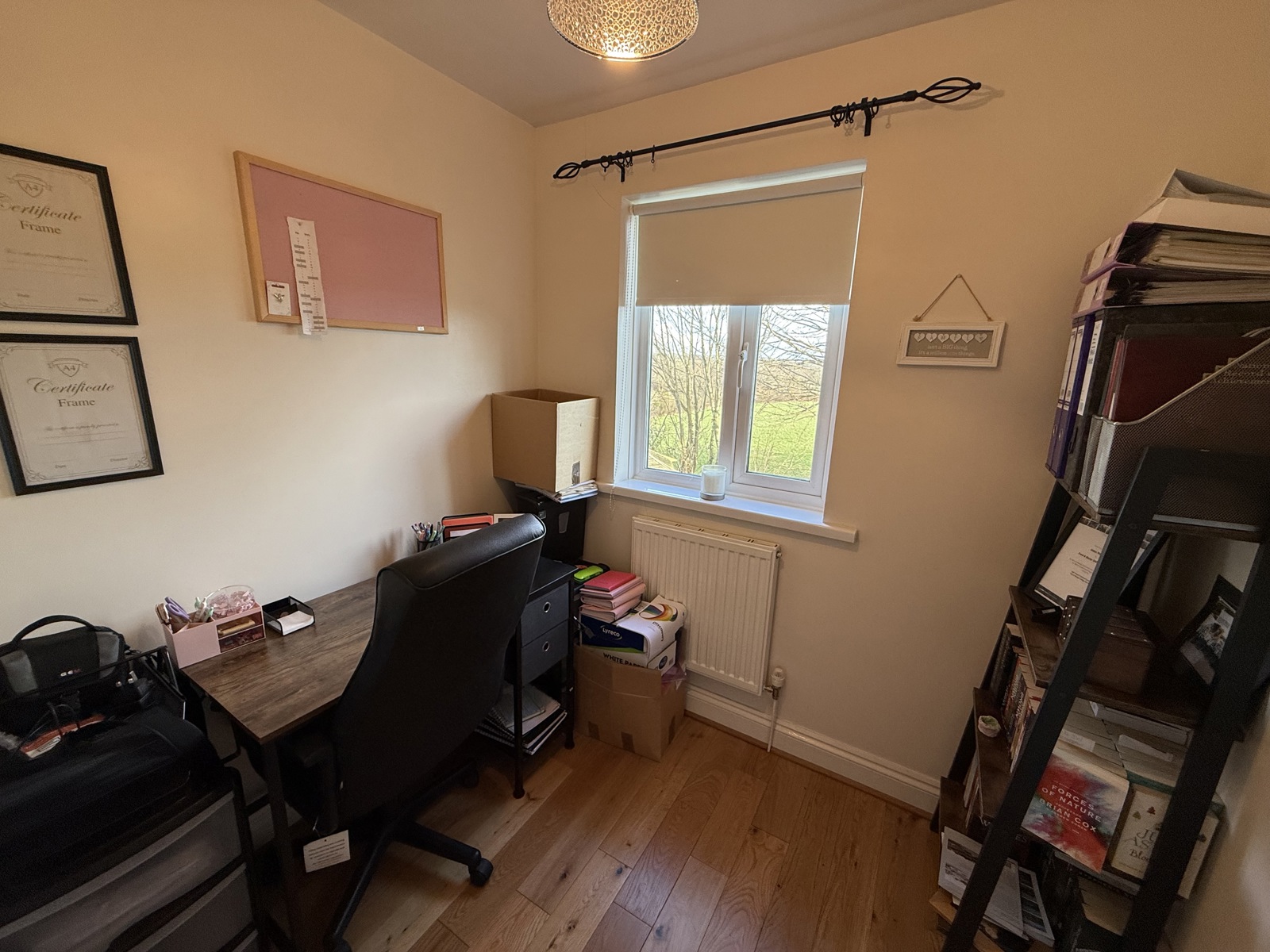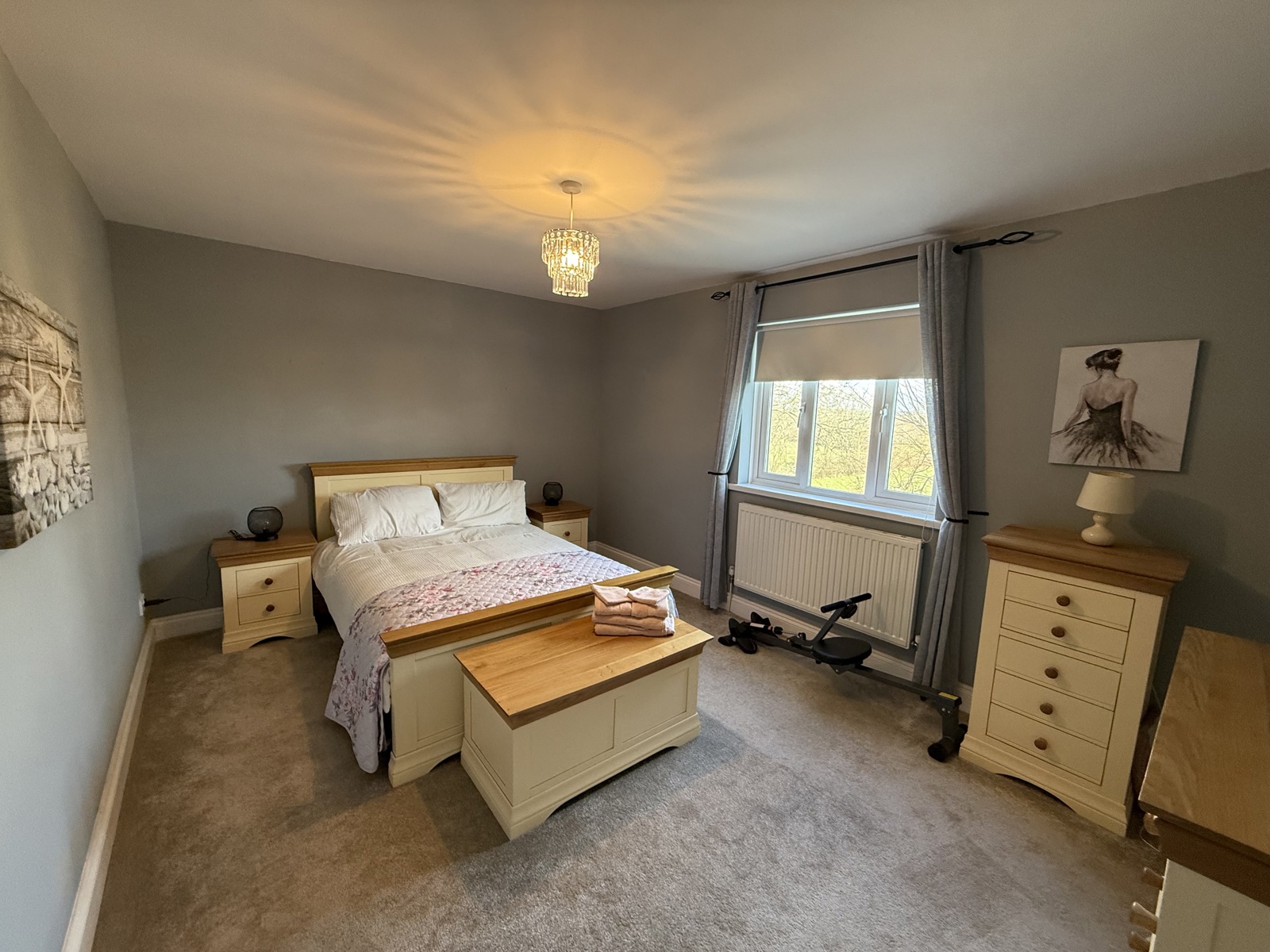 uPVC double glazed window overlooking the rear garden and countryside views, laminate flooring.