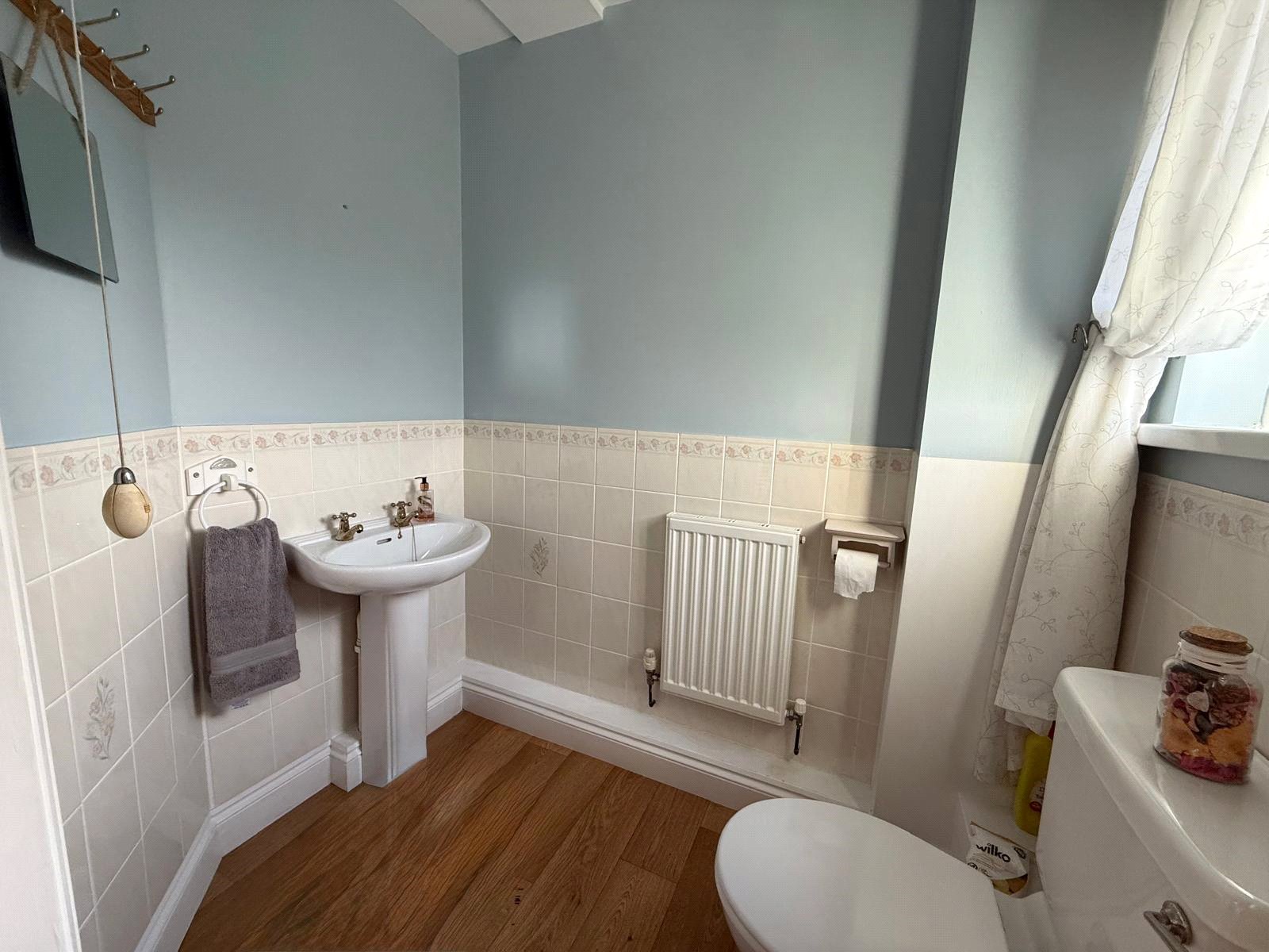 Obscured uPVC double glazed window to front, WC, wash hand basin and laminate flooring.