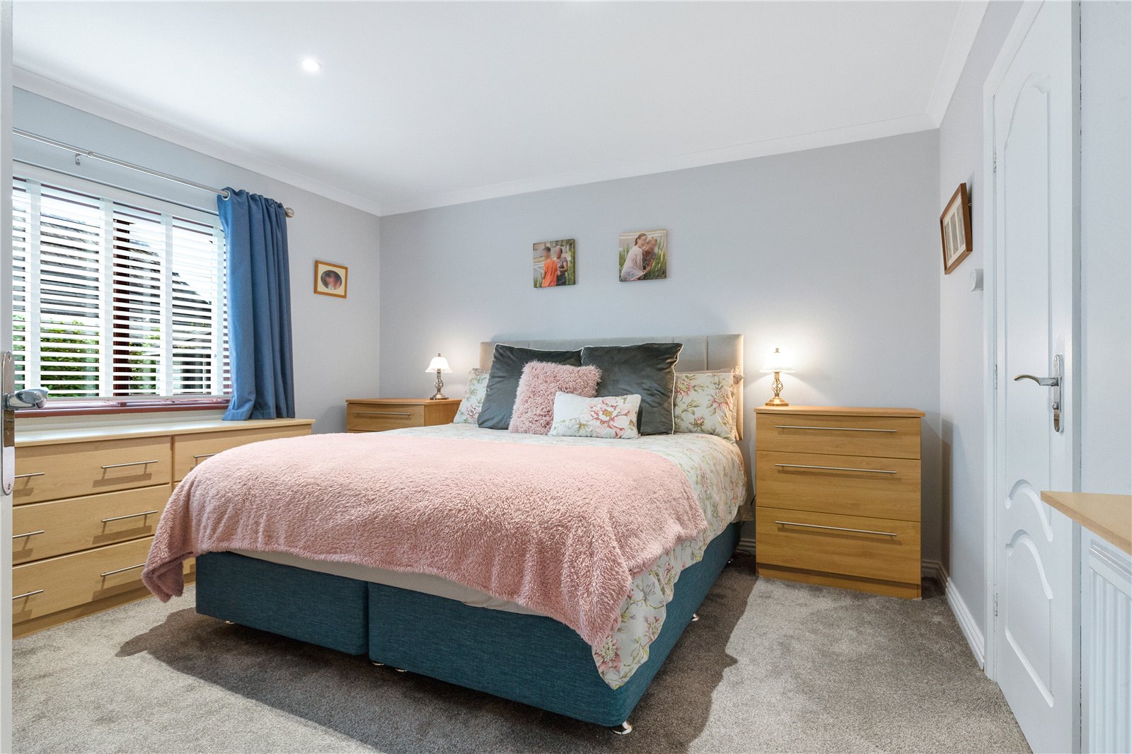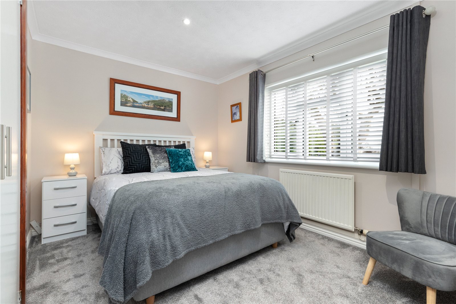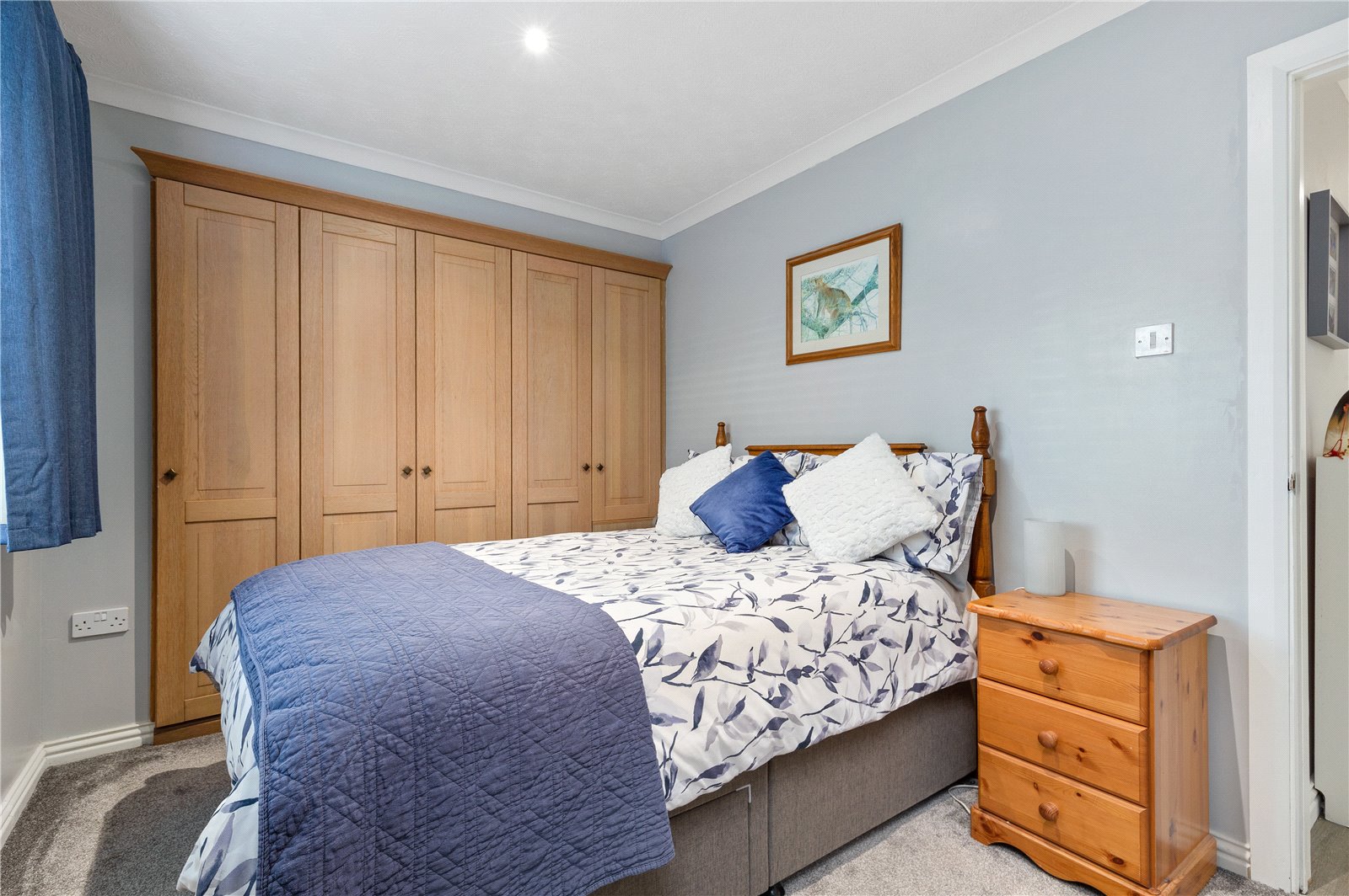 Carpeted floor, radiator, uPVC double glazed window to rear with fitted blinds, fitted dressing table and cupboards, spotlights on ceiling.
