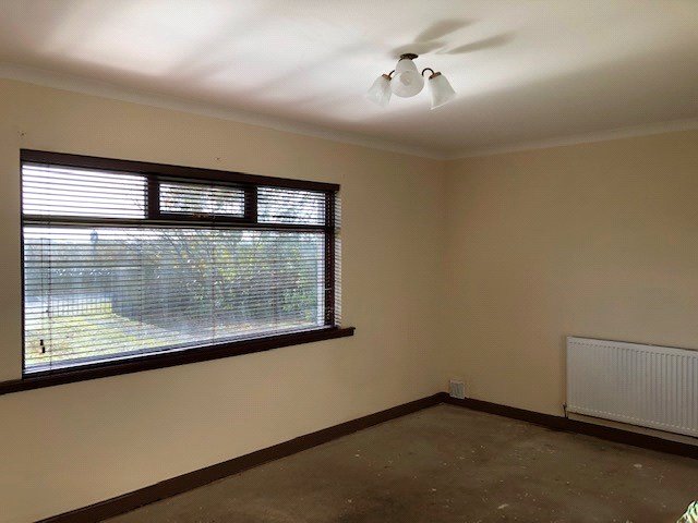uPVC double glazed window to fore overlooking garden, ceiling light, radiator, open stone fireplace with wooden mantle, control for central heating.