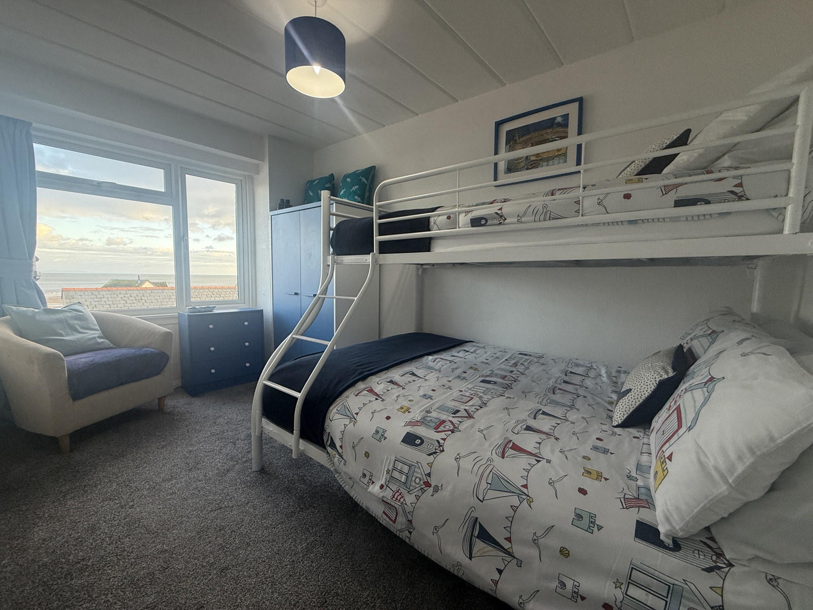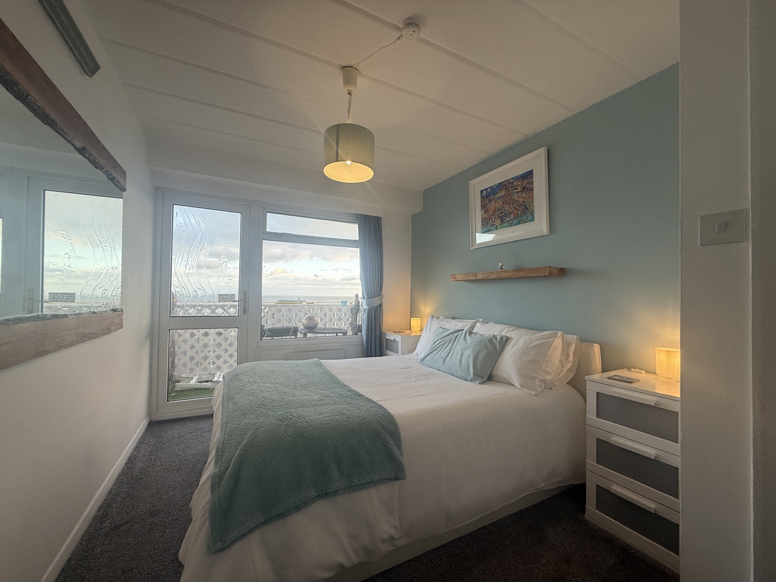 Good size bedroom with fitted carpet, double glazed window the sea views