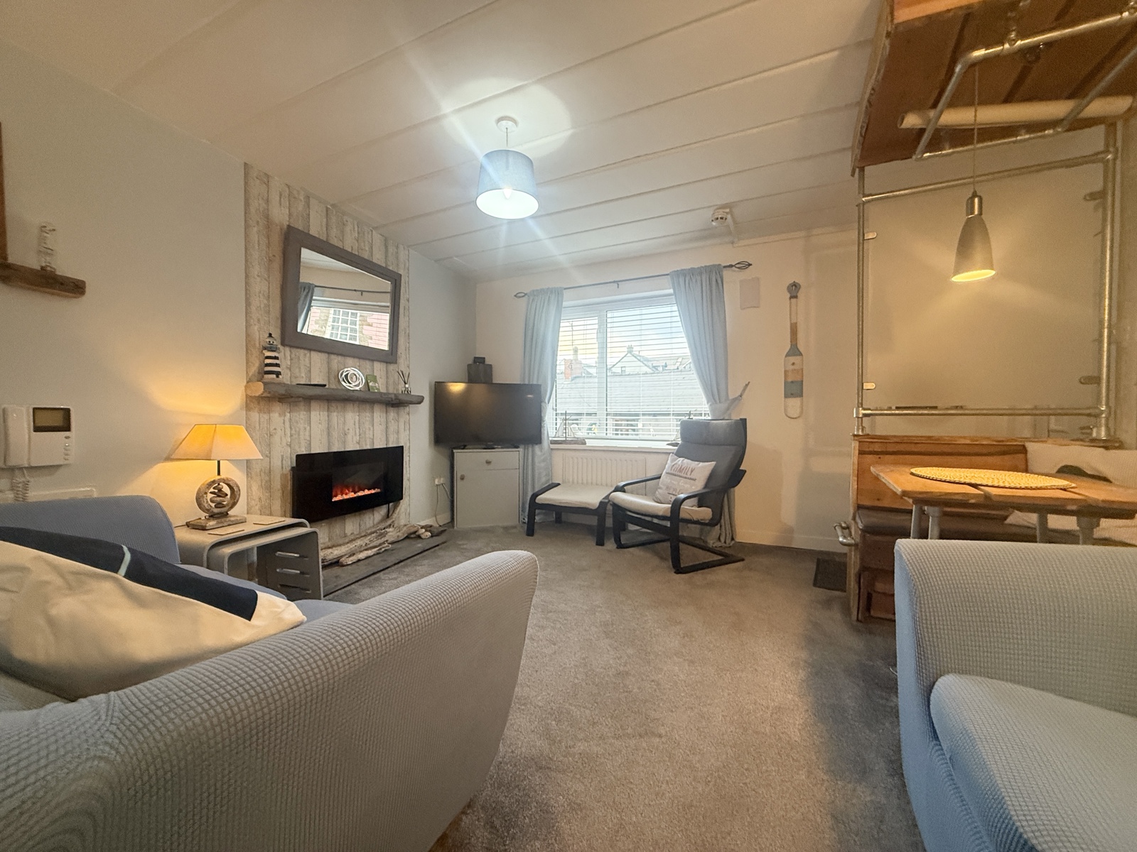 Open plan living room with feature dining area. Fitted carpet, double glazed widow to the front.
